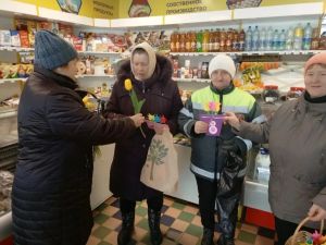 В преддверии Международного женского дня библиотекарь Микуличской сельской библиотеки и сотрудники Микуличского сельского Дома культуры устроили акцию «Дарите женщинам цветы!» в селе Русское.