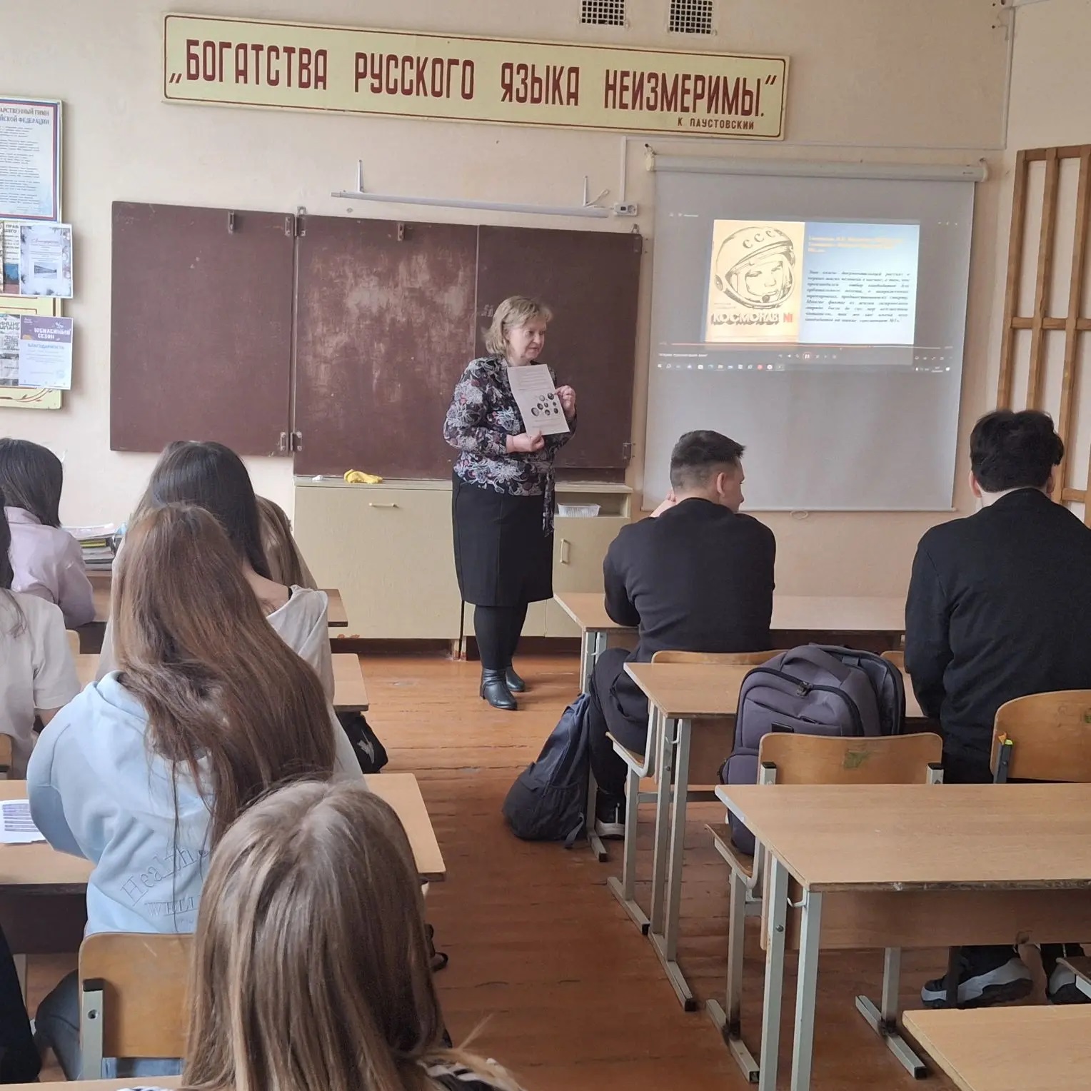 Ученики с интересом слушали рассказ о том, как простой мальчик, наш земляк из Смоленской области, сумел преодолеть все трудности, включая суровые военные годы, и достичь таких головокружительных высот. Им поведали не только о триумфальном полете 1961 года, но и о том, какой ценой далась эта победа: о строгом отборе кандидатов, изнурительных тренировках и невероятном мужестве первых покорителей космоса.