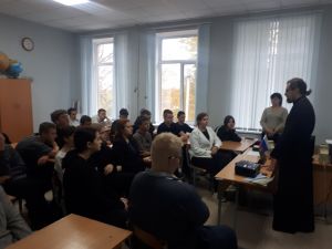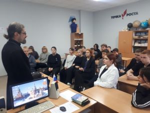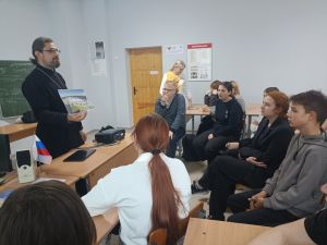 Соловецкий монастырь, пожалуй, являет собой один из наиболее ярких примеров, отражающих тернистый путь нашей Родины. Этому священному месту был посвящен час православной истории под названием «Слово о Соловецком монастыре», организованный Первомайской сельской библиотекой для учеников Первомайской средней школы 10 октября. На мероприятие был приглашен настоятель храма Меркурия Смоленского, священник Е.В. Иванов.