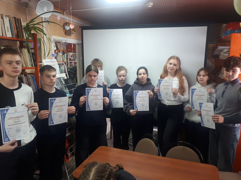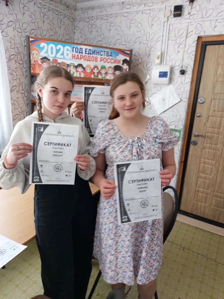 Все участники показали отличные результаты, проявив не только грамотность, но и глубокие знания о Юрии Гагарине. Каждый из них еще раз убедился, что в жизни нет ничего невозможного, на примере жизненного пути Юрия Гагарина - простого деревенского мальчика из Смоленской глубинки, ставшего легендой и примером для множества поколений.  В завершение каждому вручили именной сертификат, подтверждающий участие в этом важном событии.
