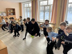 Дети с радостью участвовали в конкурсах, таких как «Соловей разбойник», «Один в поле не воин» и «Прыжки через горюч камень».