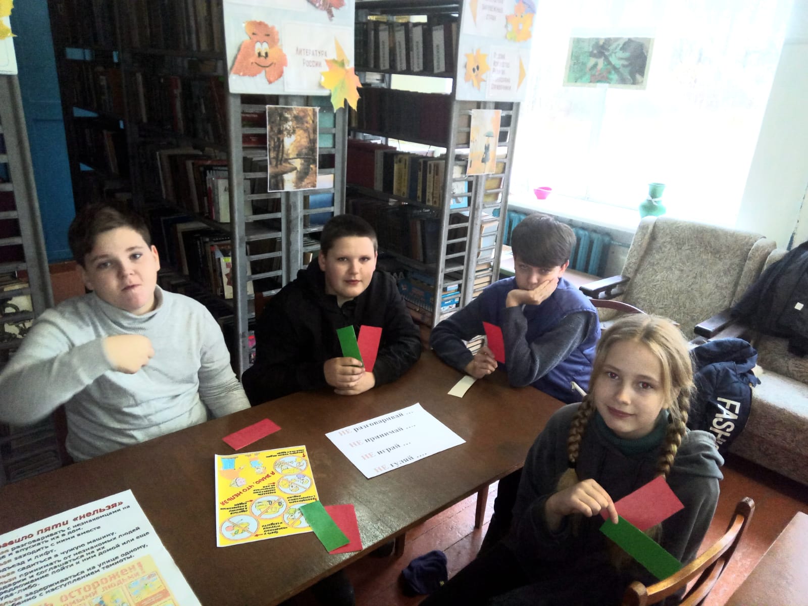 В заключение мероприятия библиотекарь объяснила ребятам, что не нужно бояться каждого встречного и жить в страхе, что вас могут обидеть, похитить, ограбить или причинить боль. Нужно просто усвоить и соблюдать правила безопасного поведения,  и тогда ничего плохого не случится.