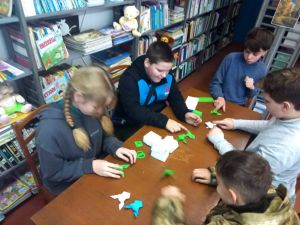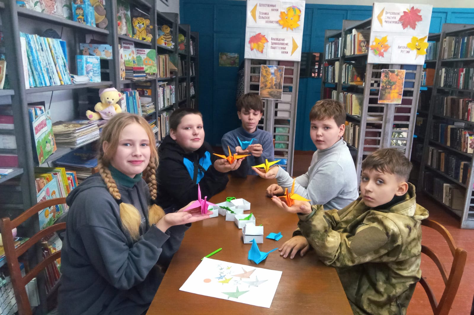 К этому празднику 9 ноября в Петровичской сельской библиотеке для детей была организована оригами- мастерская "Искусство целого листа". В начале мероприятия библиотекарь рассказала, что слово "оригами" буквально означает "сложенная бумага" и возникло это искусство там, где и была изобретена бумага -в Китае, но наибольшую популярность получило в Японии, откуда и  распространилось по всему миру.