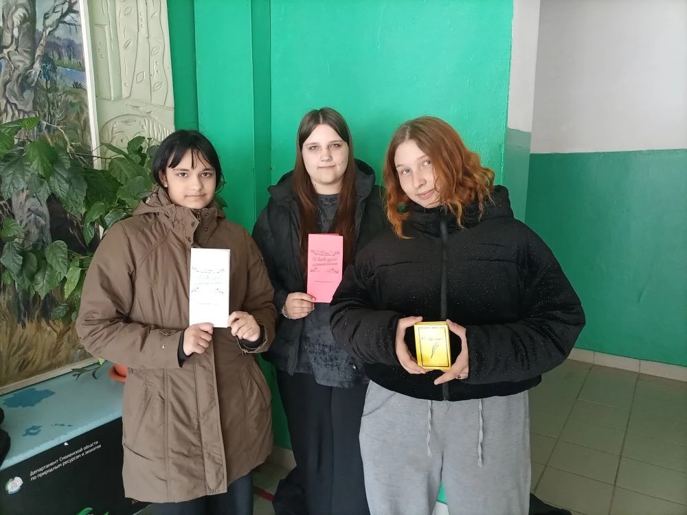 Школьники получили буклеты со стихами о поэзии и интересными фактами о поэтах. Поэтическая акция «Золотая россыпь стихов» стала ярким и вдохновляющим примером, которая ещё раз напомнила о красоте и значимости поэтического слова, способного творить чудеса -  вдохновлять, утешать и соединять одинокие сердца, помогать осмысливать происходящее и даже менять общественные настроения.