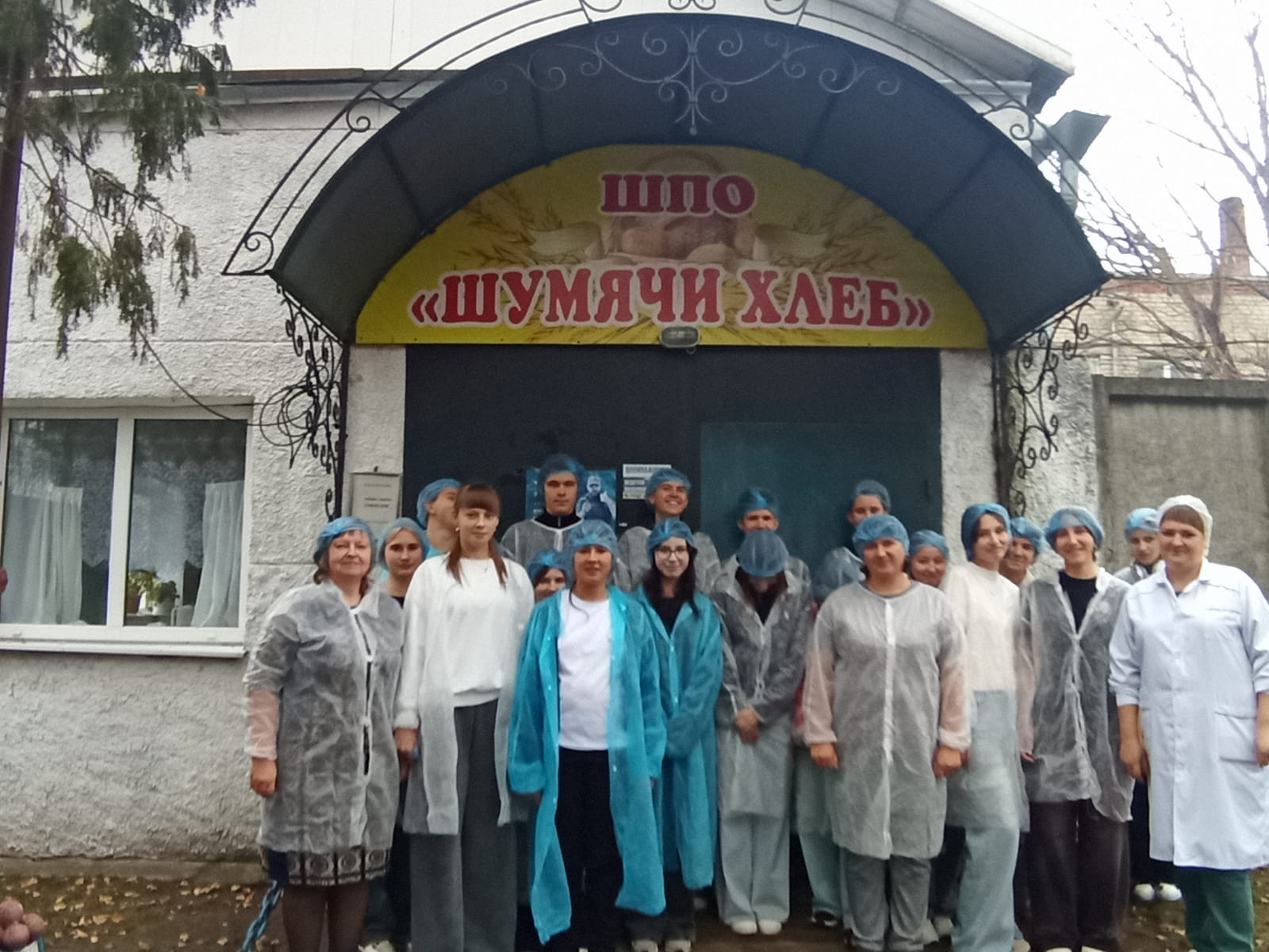 Подходя к предприятию, мы почувствовали восхитительный аромат хлеба и сдобы. Нас радушно встретили работники хлебокомбината, перед экскурсией выдали белые халаты и шапочки. Технолог - лаборант ШПО «Шумячи Хлеб» Светлана Павловна Игнатова провела нас по производственным цехам. Она увлекательно рассказала о процессе производства хлеба и кондитерских изделий. Важно отметить, что хлеб пекут преимущественно ночью, чтобы мы могли наслаждаться свежеиспечённым лакомством в течение дня.