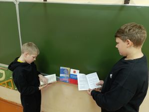 12 декабря библиотекарь Шумячской центральной детской библиотеки провела для учеников 6 «Б» и 7 «А» классов Шумячской средней школы имени В.Ф. Алешина познавательный урок правовой грамотности под названием «Конституция – основной закон, по которому живем».