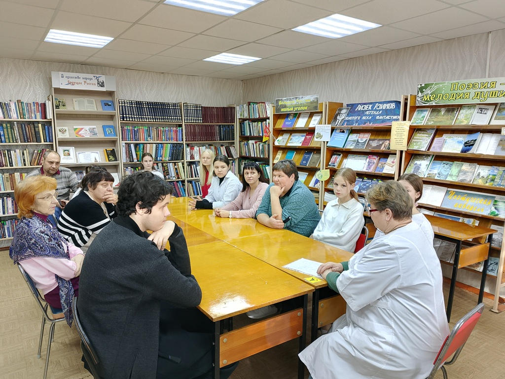 1 ноября в Шумячской центральной библиотеке прошла семейная встреча с медсестрой на тему «Простые шаги к здоровому образу жизни». Медсестра кабинета медицинской профилактики Шумячской участковой больницы Галина Леонидовна Барбасова рассказала о профилактике ОРВИ и гриппа. Встреча прошла в читальном зале библиотеки в уютной и дружеской атмосфере.